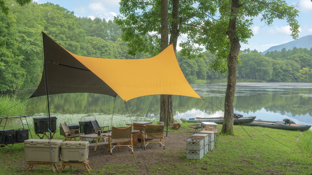 今回、湖の近いところにリビングスペースとして「The Arth × アーバンフォレスト」の”幕男”を張ってもらいました。
